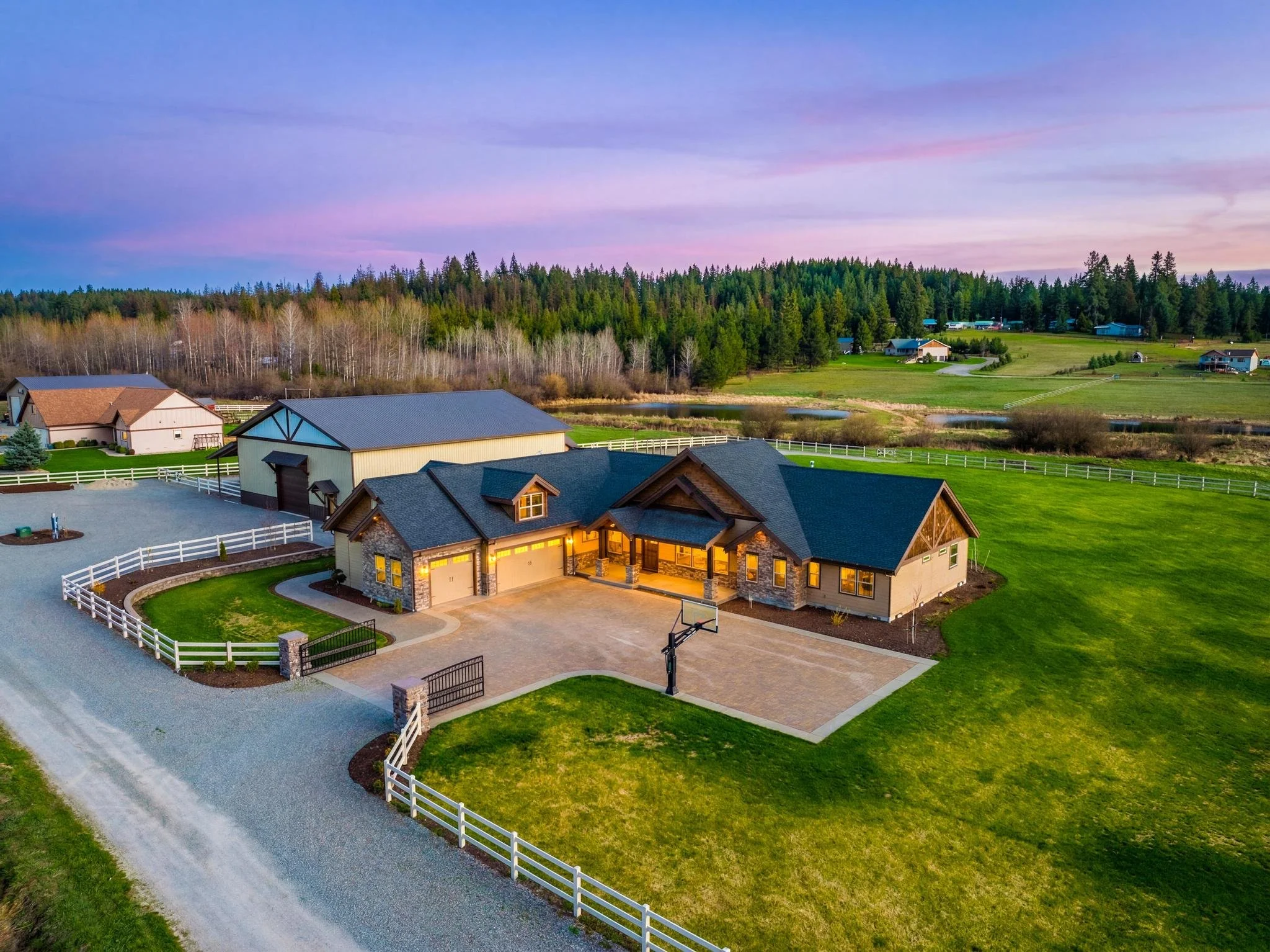 Step outside to a true entertainers setting-paver driveway, outdoor living space with built-in BBQ and TVs, fire-pit, garden beds, custom chicken coop, and a fully fenced backyard. A seasonal stream winds through the property, a private pond stocked with bass, all set against peaceful mountain views. The crown jewel is the 60' x 72' fully finished and heated gym/shop with a 14' x 72' lean-to--featuring 20' ceilings and a custom hardwood-floor basketball court, workout area, indoor trampoline, lounge area and private bathroom. This is more than a gym/shop--it's a lifestyle space built for play, passion, and possibilities. Additional highlights include a paver driveway, natural gas on acreage and backup generator. All this just minutes from town--only 2 miles to Highway 95 and 5 miles to Honeysuckle Beach at Hayden Lake. No detail was overlooked. Properties like this are exceptionally rare.